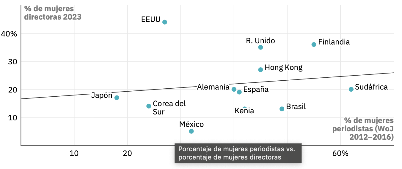 Porcentaje de mujeres periodistas vs. porcentaje de mujeres directoras