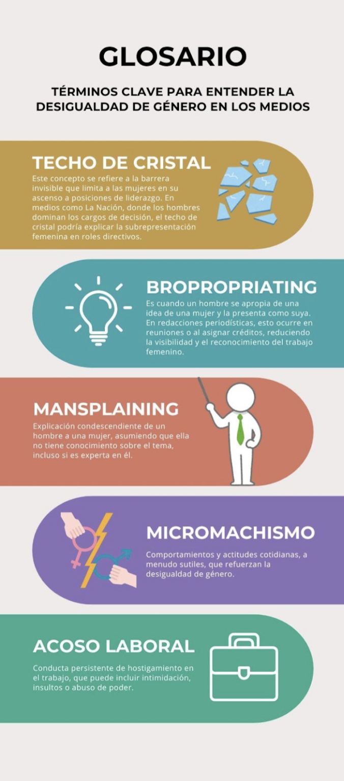 Este glosario presenta una selección de conceptos esenciales que ayudan a entender las dinámicas de desigualdad de género en el ámbito periodístico. Desde barreras invisibles como el techo de cristal hasta comportamientos más sutiles como el micromachismo, estos términos ilustran cómo las mujeres se ven afectadas en el día a día de su profesión. Este material busca aportar claridad sobre fenómenos como el "bropropriating" o el "mansplaining", que limitan la visibilidad y el reconocimiento del trabajo femenino en las redacciones y otras áreas de comunicación.